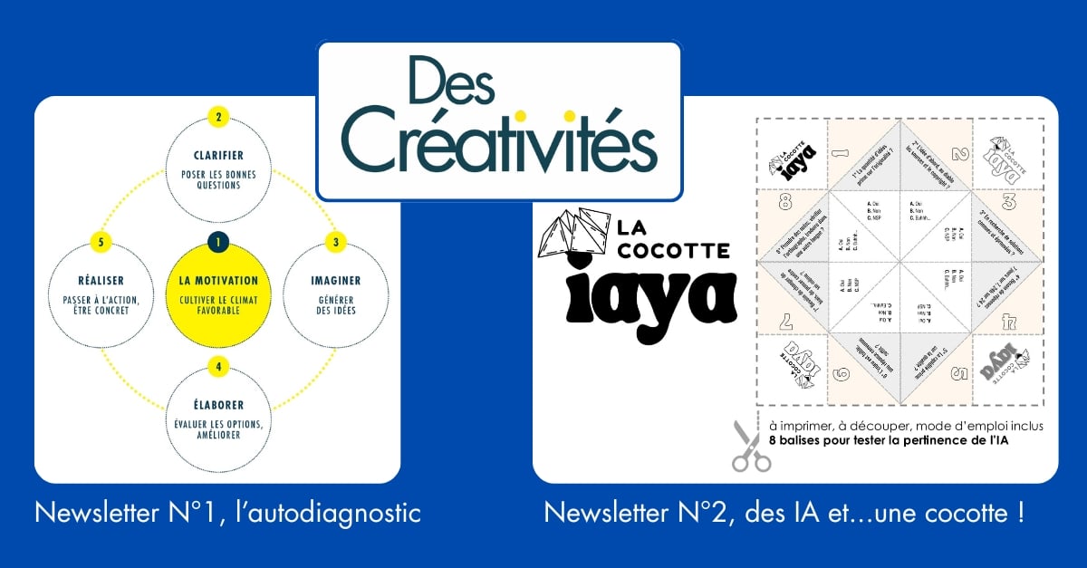 J’ai également dirigé l’ouvrage Les dessous de la créativité : gagner en confiance créative et relever les défis, publié aux Éditions Ellipses, avec l’ambition d’éclairer les facettes de la créativité, de partager des repères solides, d’offrir des outils concrets et des témoignages inspirants. Certains de ces outils sont téléchargeables dans les différents numéros “Des Créativités”. Par exemple, la Roue de la créativité opérationnelle est à télécharger dans le N°1. Je conçois également des outils spécialement pour la newsletter, comme dans le N°2 avec la désormais fameuse cocotte IAYA.